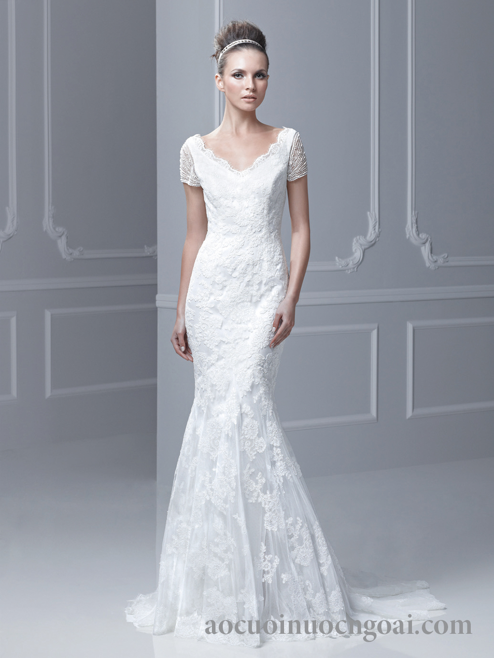 Áo cưới đuôi cá cổ V NN1868
