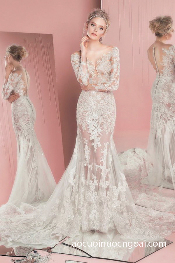 Áo cưới đuôi cá đính ren NN1962
