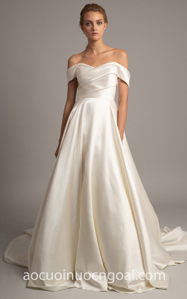 ÁO CƯỚI CÔNG CHÚA MINIMALIST TRỄ VAI TỐI GIẢN NN7053
