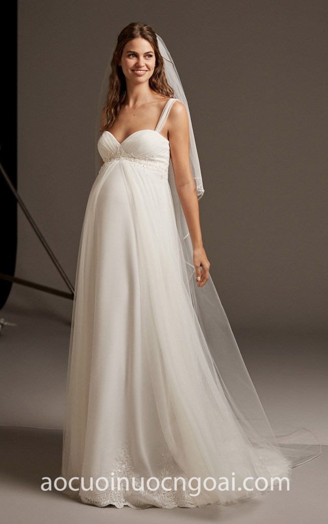 ÁO CƯỚI CHE BỤNG CHO CÔ DÂU CÓ BẦU NN7096