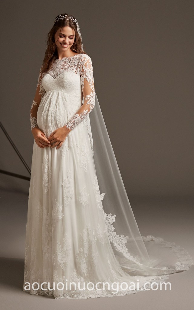 ÁO CƯỚI REN TAY DÀI CHO MẸ BẦU NN7094