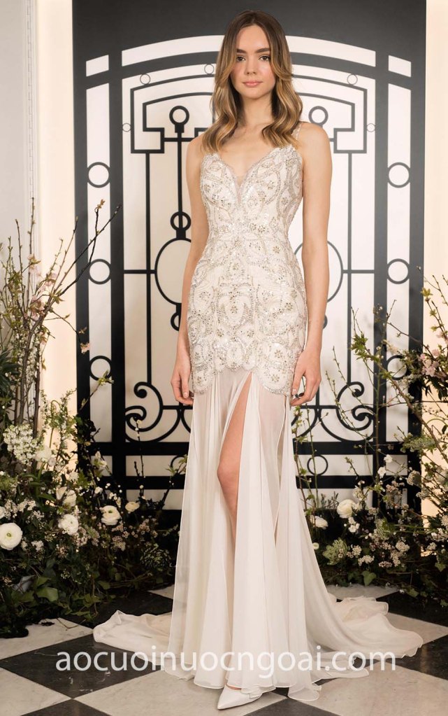 ÁO CƯỚI ĐUÔI CÁ DẠ TIỆC XẺ TÀ ĐÍNH ĐÁ SEXY NN7114