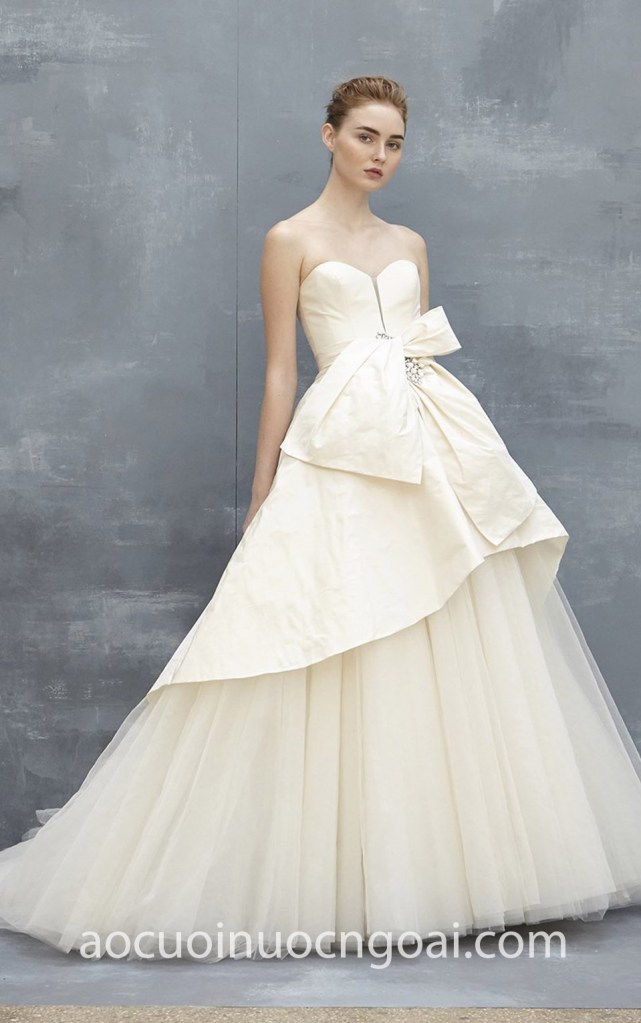 ÁO CƯỚI CÔNG CHÚA CÚP NGỰC PHỐI NHIỀU CHẤT LIỆU NN7130