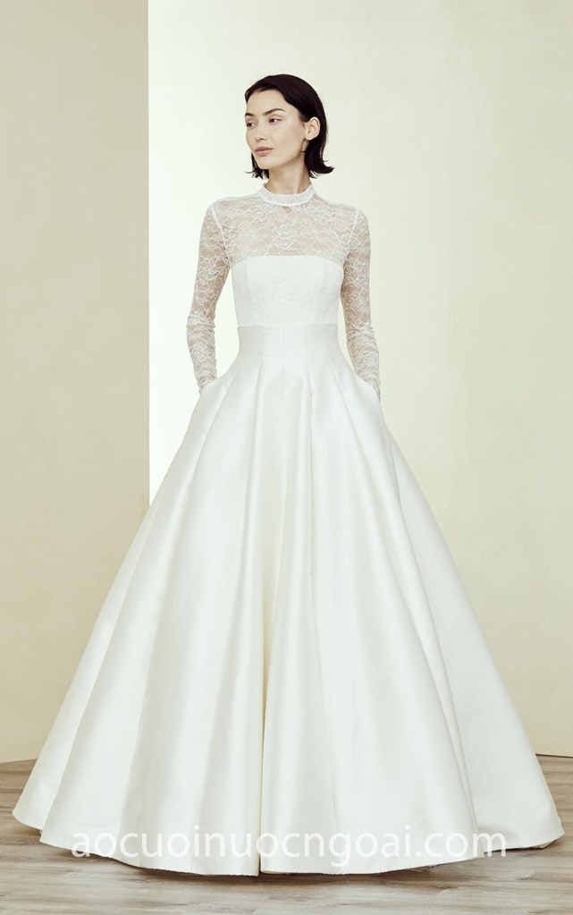ÁO CƯỚI CÔNG CHÚA SATIN TAY DÀI REN NN7147