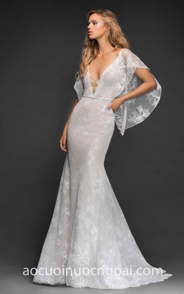 ÁO CƯỚI ĐUÔI CÁ CAPELET PHỐI REN NN7158