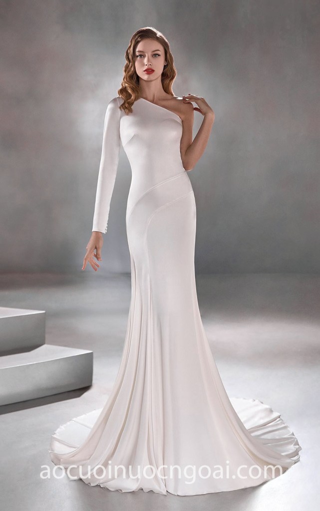 ÁO CƯỚI LỆCH VAI TỐI GIẢN MINIMALIST NN7163