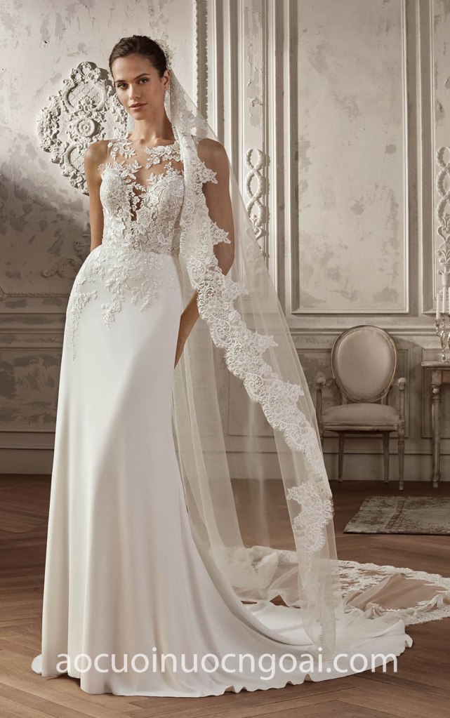 ÁO CƯỚI ĐUÔI CÁ LỤA PHỐI REN NN7169