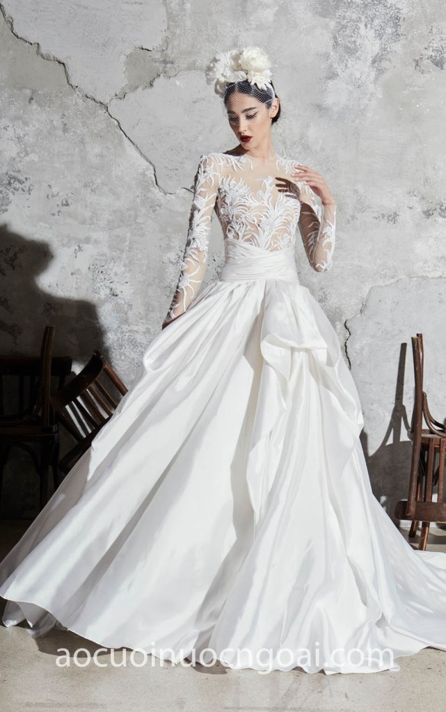 ÁO CƯỚI CÔNG CHÚA XUYÊN THẤU TÙNG SATIN GỢI CẢM NN7219