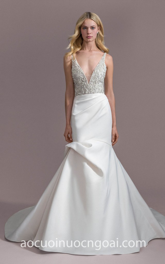 ÁO CƯỚI ĐUÔI CÁ TÙNG SATIN XẾP NẾP ẤN TƯỢNG NN7226