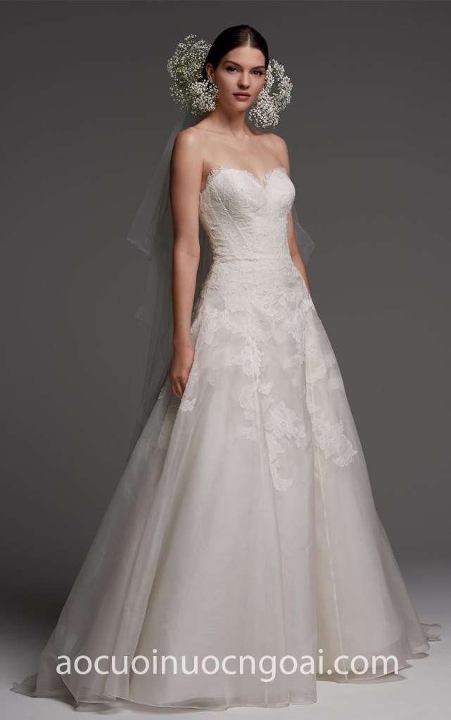 ÁO CƯỚI CHỮ A CÚP NGỰC PHỐI REN NỮ TÍNH NN7323