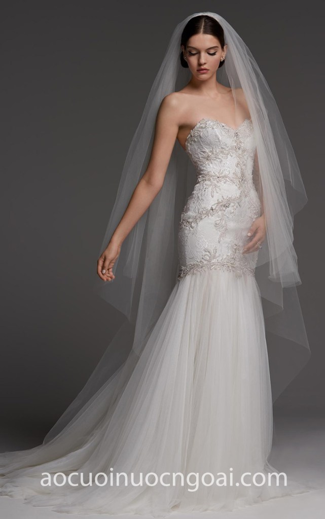 ÁO CƯỚI ĐUÔI CÁ CÚP NGỰC PHỐI REN ĐÍNH ĐÁ NN7318