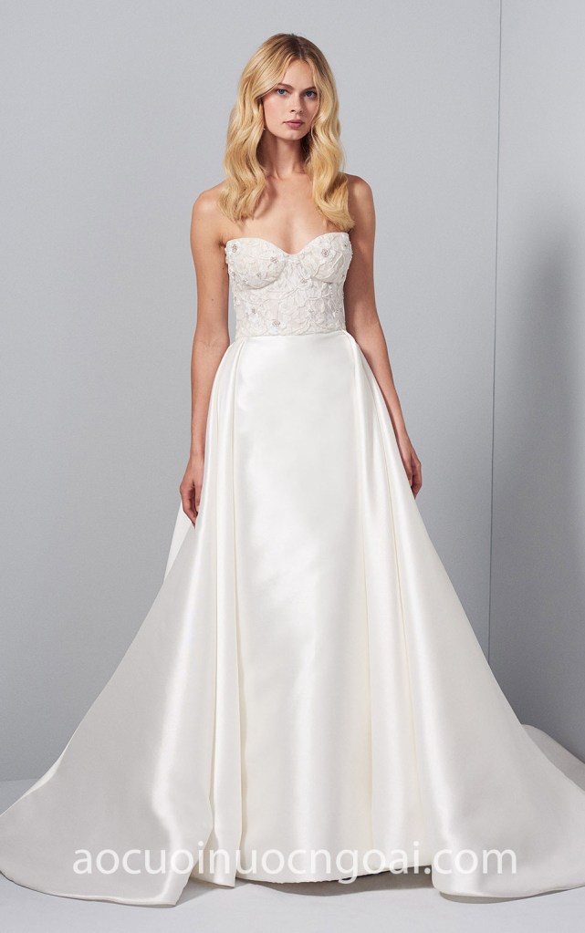 ÁO CƯỚI ĐUÔI CÁ CÚP NGỰC REN TÙNG SATIN NN7321