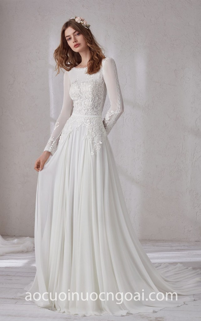 ÁO CƯỚI CHỮ A TAY DÀI REN NỮ TÍNH NN7343
