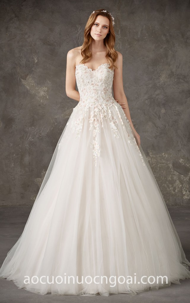 ÁO CƯỚI CÚP NGỰC TÙNG XOÈ ĐÍNH HOA XINH XẮN NN7365