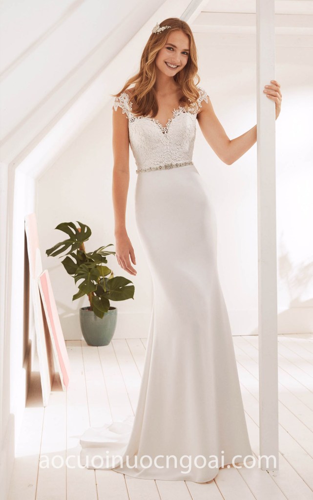 ÁO CƯỚI ĐUÔI CÁ PHỐI REN THẮT LƯNG ĐÍNH ĐÁ NN7403