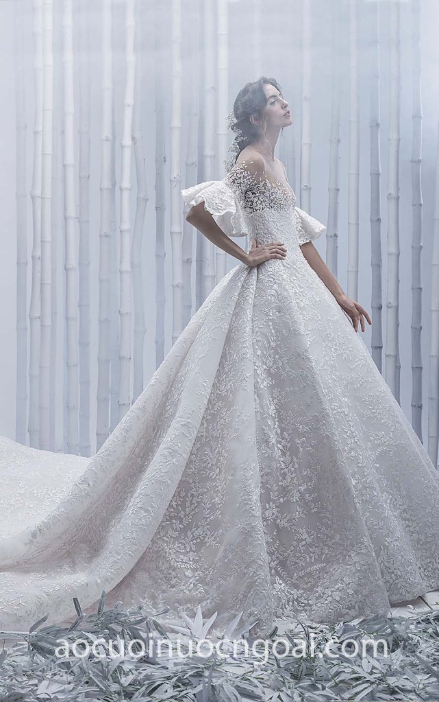 ÁO CƯỚI CÔNG CHÚA TAY BÈO ĐẸP LỘNG LẪY NN7436