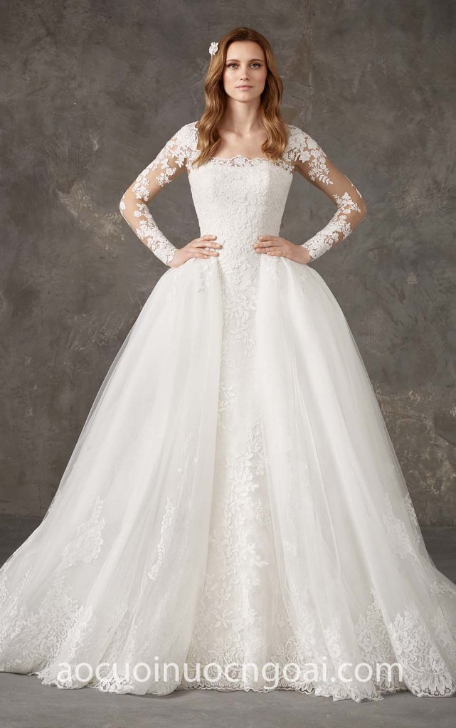 ÁO CƯỚI CÔNG CHÚA REN TAY DÀI KÈM TÙNG GIẢ 2 TRONG 1 NN7519