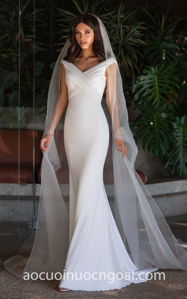 ÁO CƯỚI ĐUÔI CÁ MINIMALIST XẾP NẾP TINH TẾ NN7526