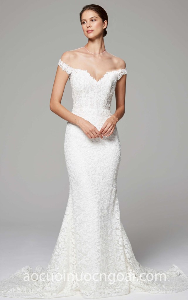 ÁO CƯỚI ĐUÔI CÁ TRỄ VAI TOÀN THÂN REN NN7539