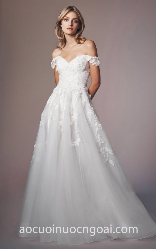 ÁO CƯỚI TRỄ VAI ĐÍNH REN HOA NN7535