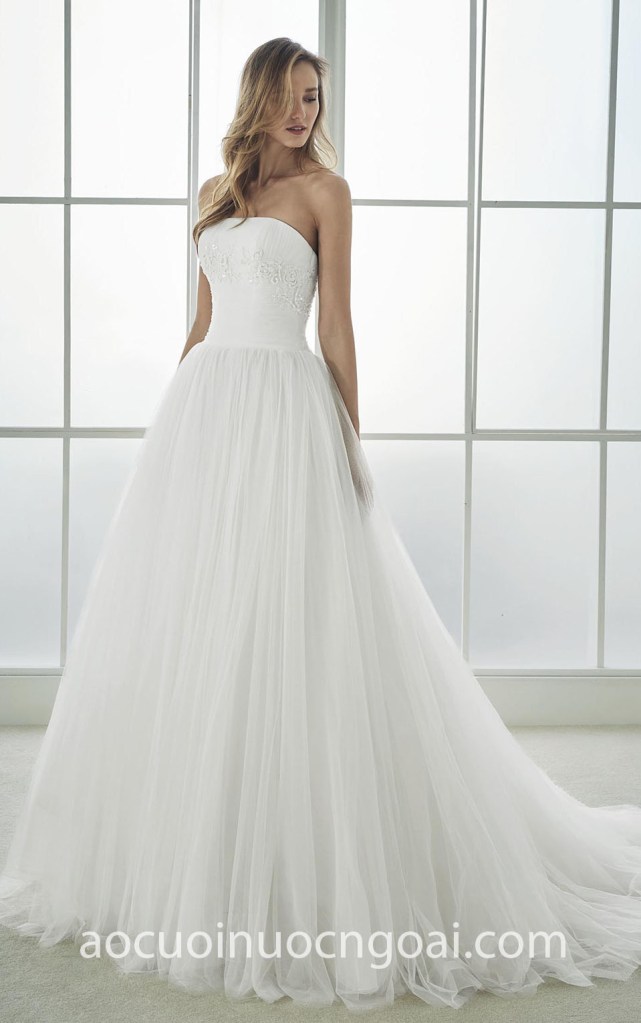 ÁO CƯỚI CHỮ A CÚP NGỰC ĐÍNH ĐÁ ĐƠN GIẢN NN7553