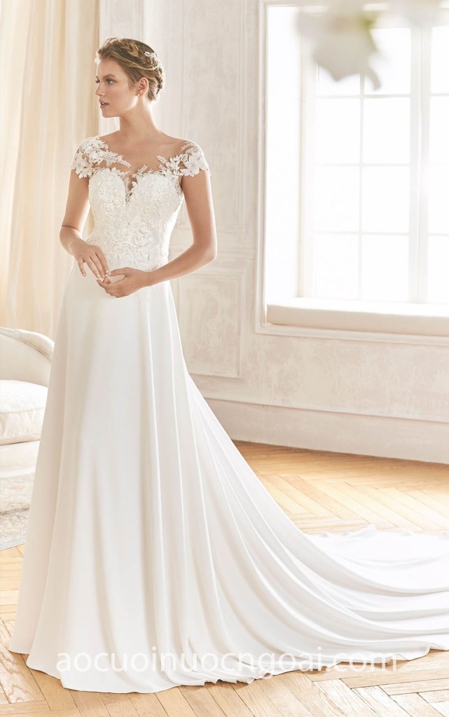 ÁO CƯỚI CHỮ A SUÔN NHẸ PHỐI REN DUYÊN DÁNG NN7562