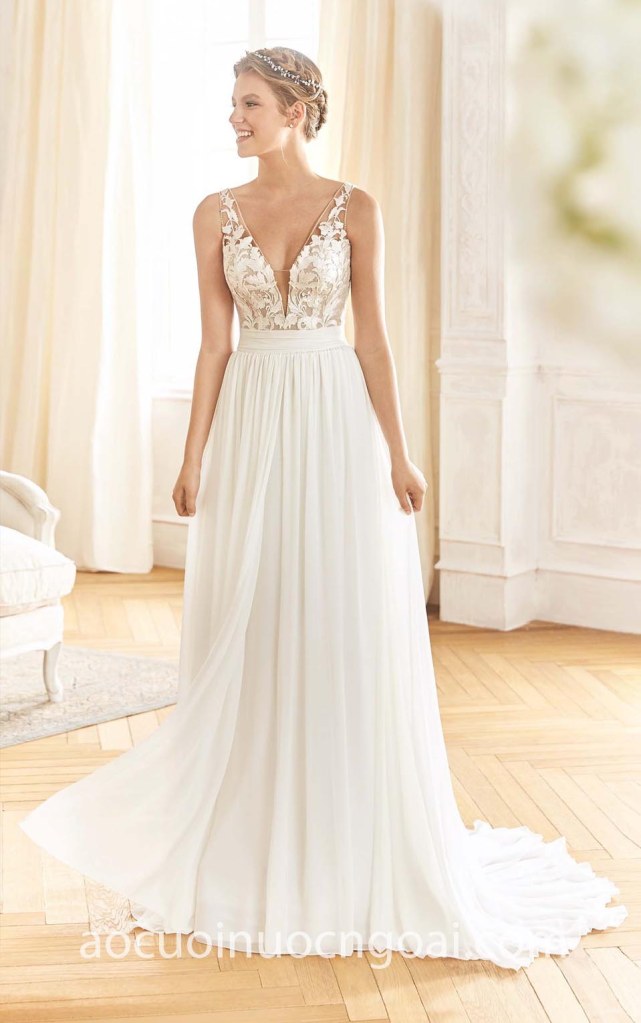 ÁO CƯỚI DÁNG SUÔN REN TÙNG XẾP LI NHẸ NHÀNG NN7559