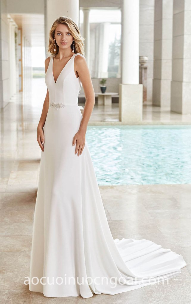 ÁO CƯỚI ĐUÔI DÀI XẺ NGỰC THẮT LƯNG ĐÍNH ĐÁ NN7560