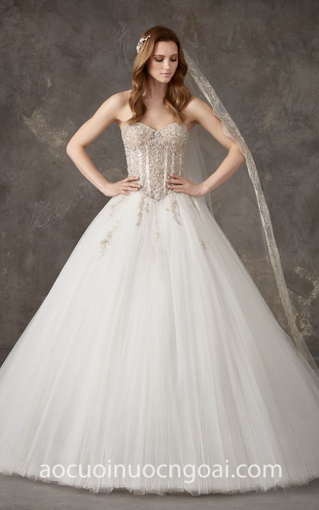 ÁO CƯỚI CÔNG CHÚA CORSET HẠ EO LỘNG LẪY NN7577