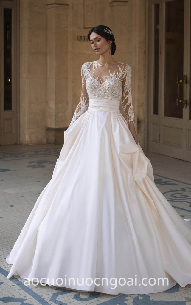 ÁO CƯỚI CÔNG CHÚA TAY DÀI ĐÍNH KẾT TINH XẢO NN7628