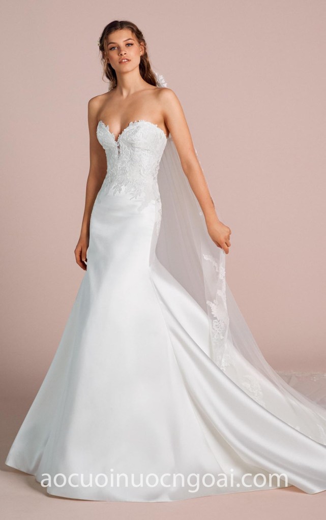 ÁO CƯỚI ĐUÔI CÁ CÚP NGỰC REN TÙNG SATIN NN7642