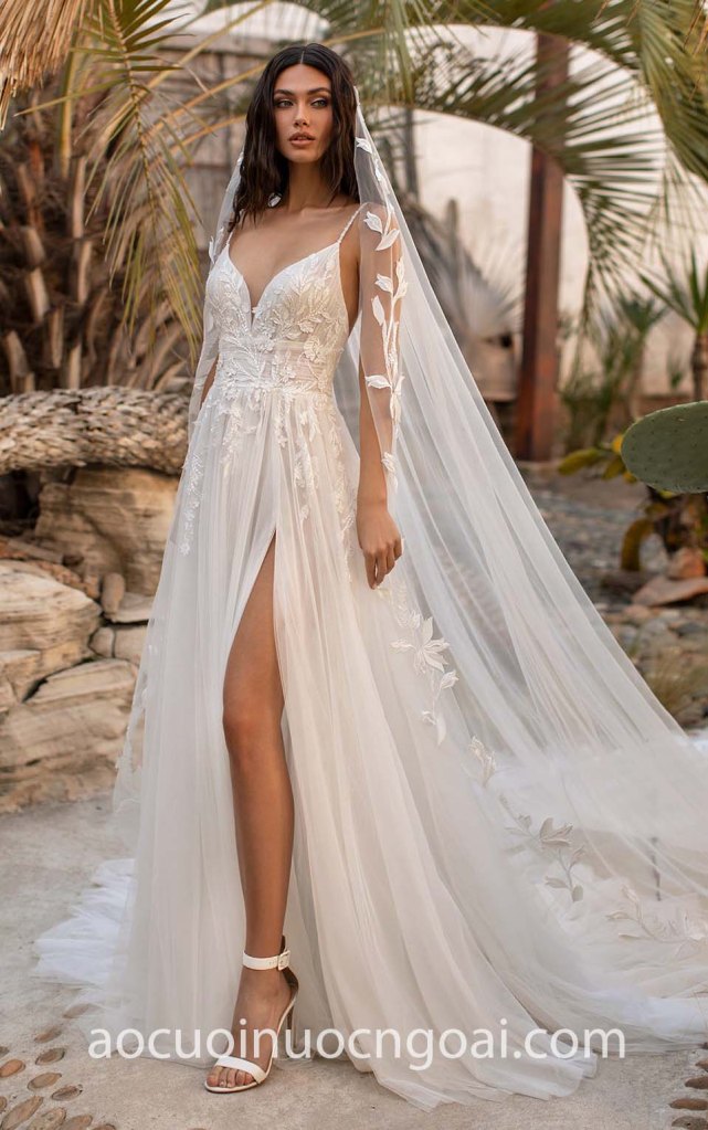 ÁO CƯỚI 2 DÂY XẺ TÀ KHIÊU GỢI NN7648