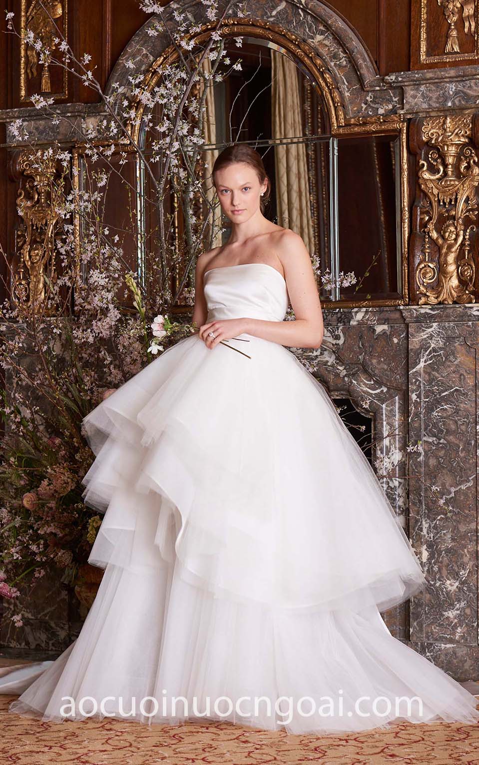 ÁO CƯỚI CÔNG CHÚA CÚP NGỰC XẾP TẦNG MINIMALIST NN7671