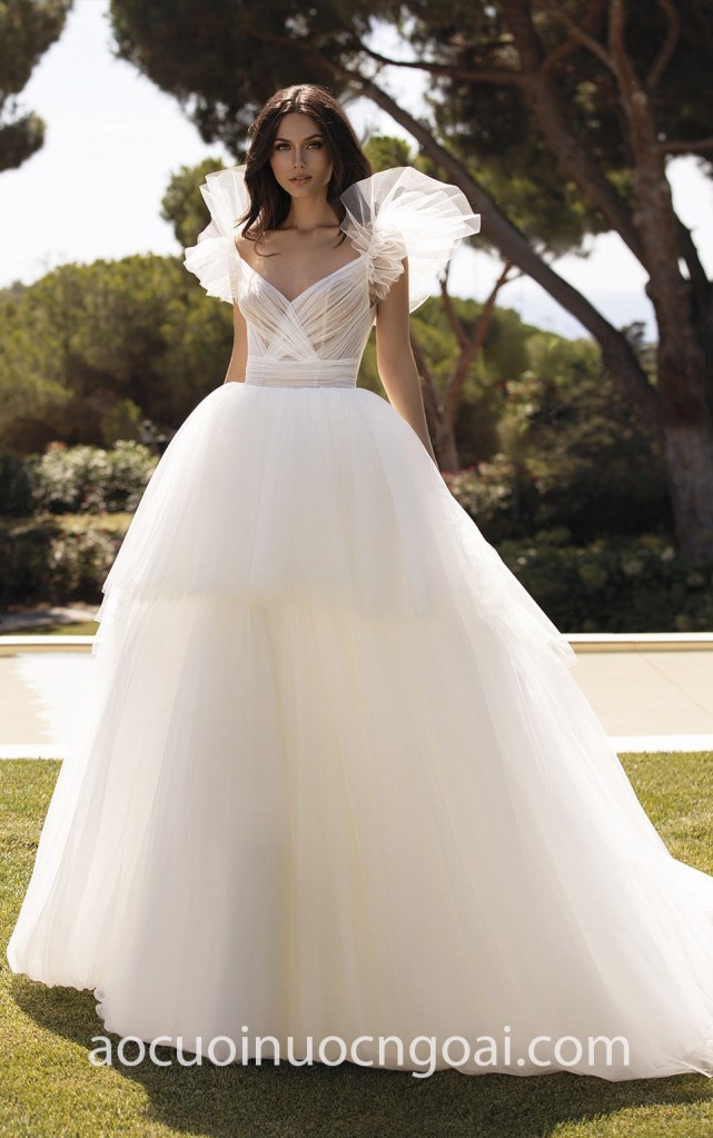 ÁO CƯỚI CÔNG CHÚA LƯỚI XẾP TẦNG BỀNH BỒNG NN7728