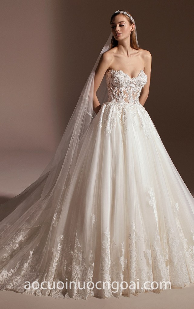 ÁO CƯỚI CÔNG CHÚA LƯỚI CÚP NGỰC CORSET REN QUYẾN RŨ NN7735
