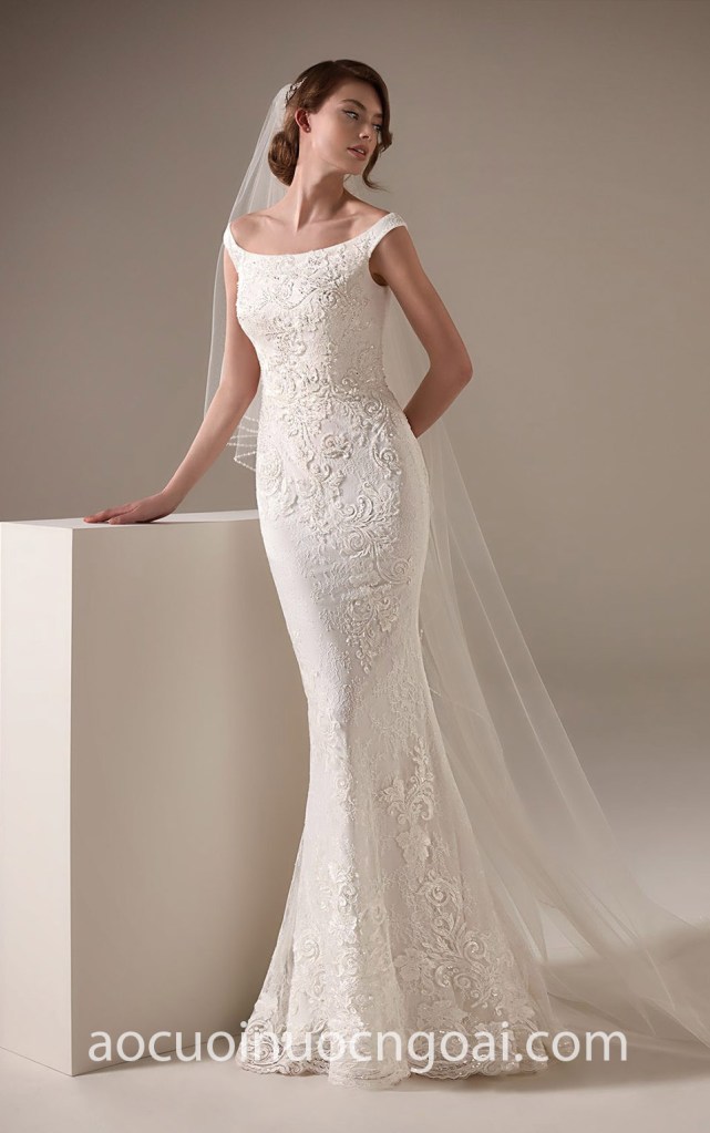 ÁO CƯỚI ĐUÔI CÁ TRỄ VAI PHỐI REN ĐÍNH KẾT TOÀN THÂN NN7879