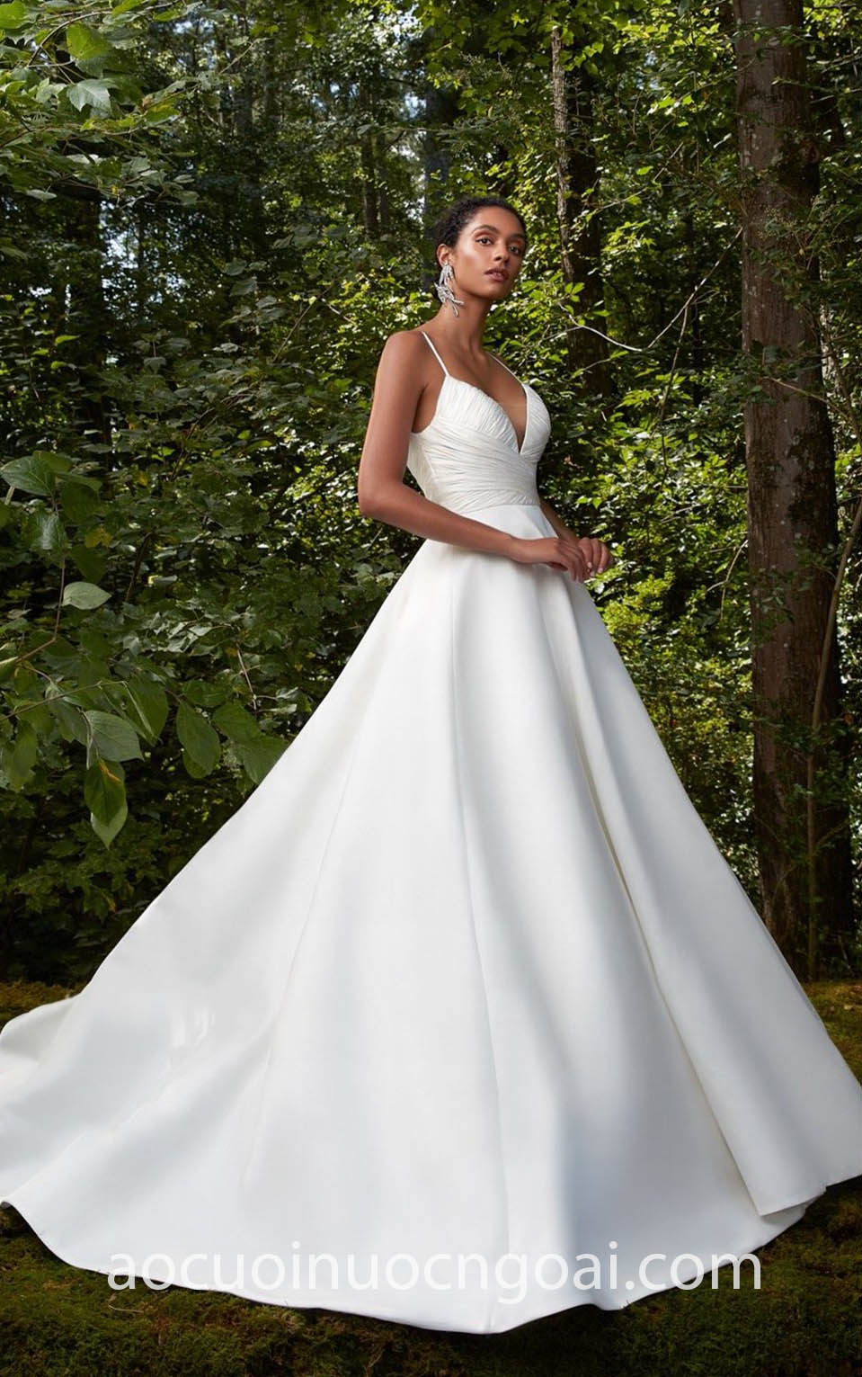 ÁO CƯỚI CHỮ A SATIN 2 DÂY TỐI GIẢN MINIMALIST NN7909