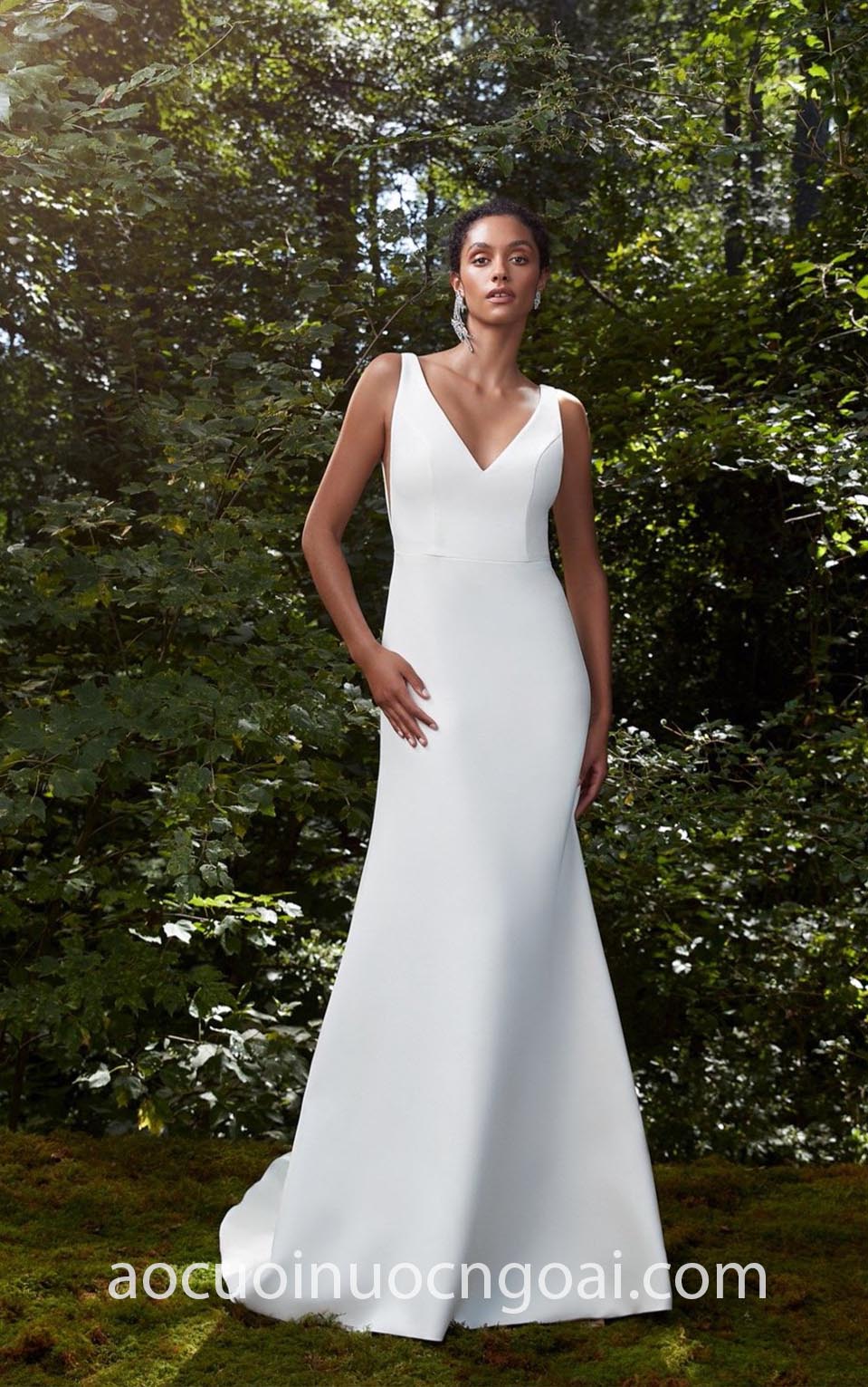 ÁO CƯỚI ĐUÔI CÁ SATIN XẺ NGỰC TỐI GIẢN MINIMALIST NN7988