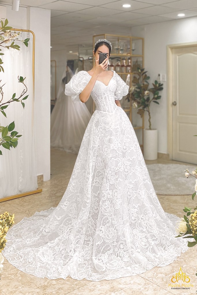 ÁO CƯỚI CHỮ A HẠ EO THÂN REN TAY PHỒNG NỮ TÍNH. MÃ MM4118
