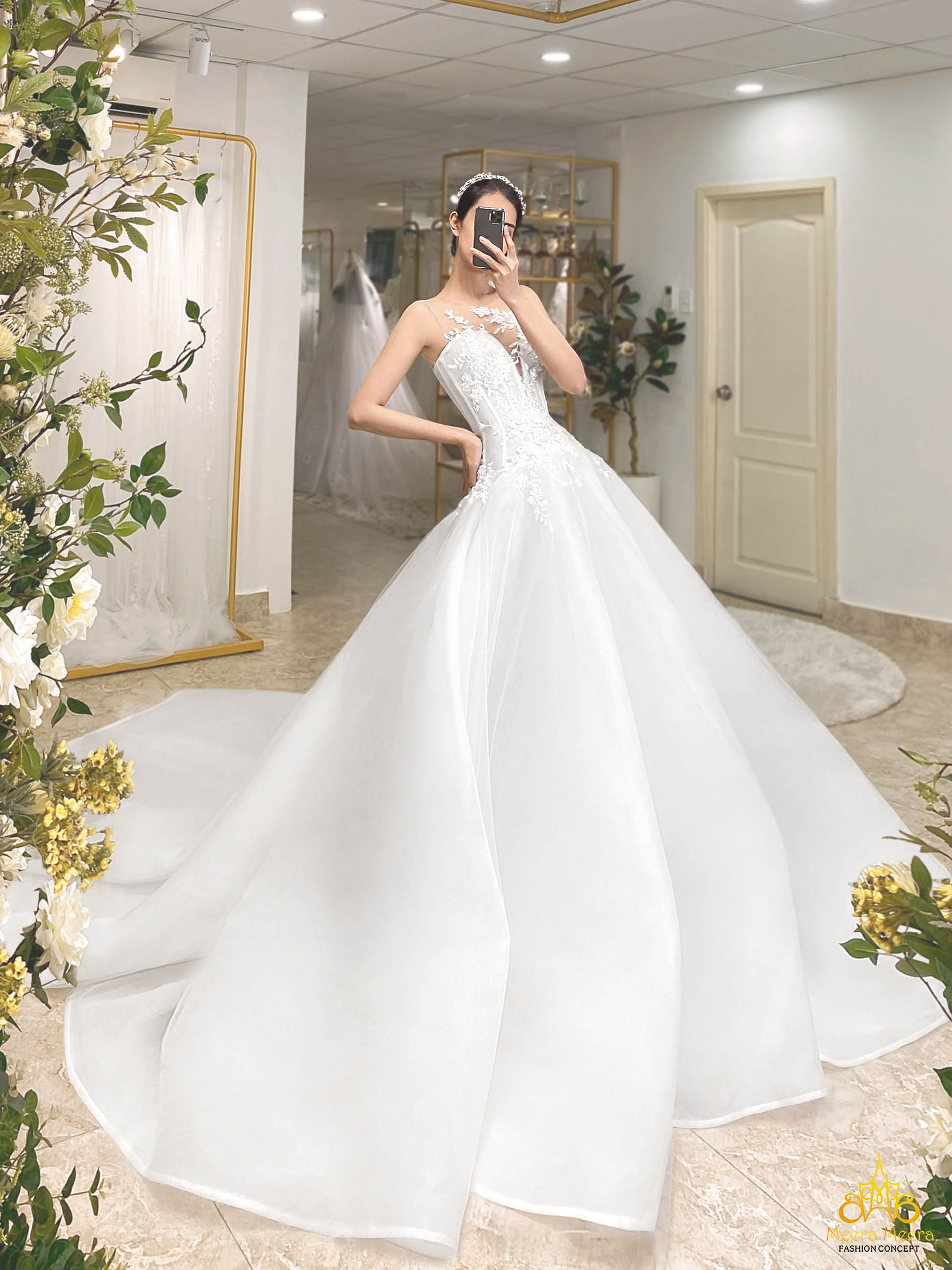 ÁO CƯỚI CÔNG CHÚA LƯỚI HẠ EO TÙNG XOÈ ẤN TƯỢNG. MÃ MM4075