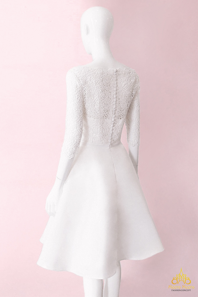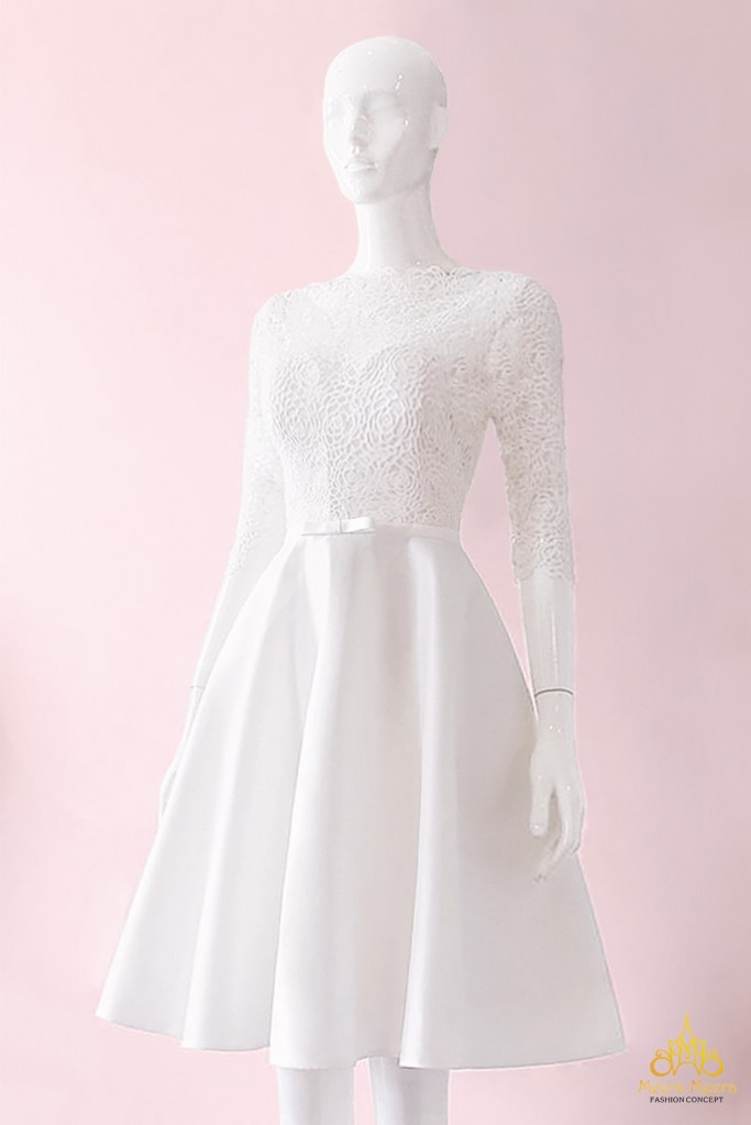 ÁO CƯỚI NGẮN MIDI THÂN REN CHÂN VÁY SATIN XINH XẮN KH1184