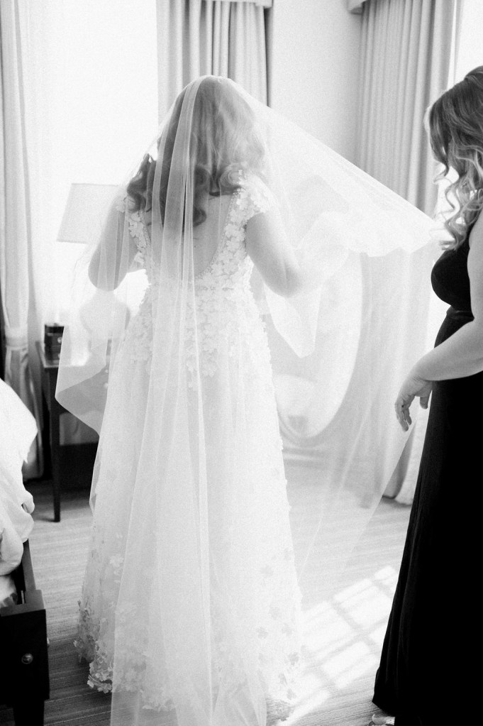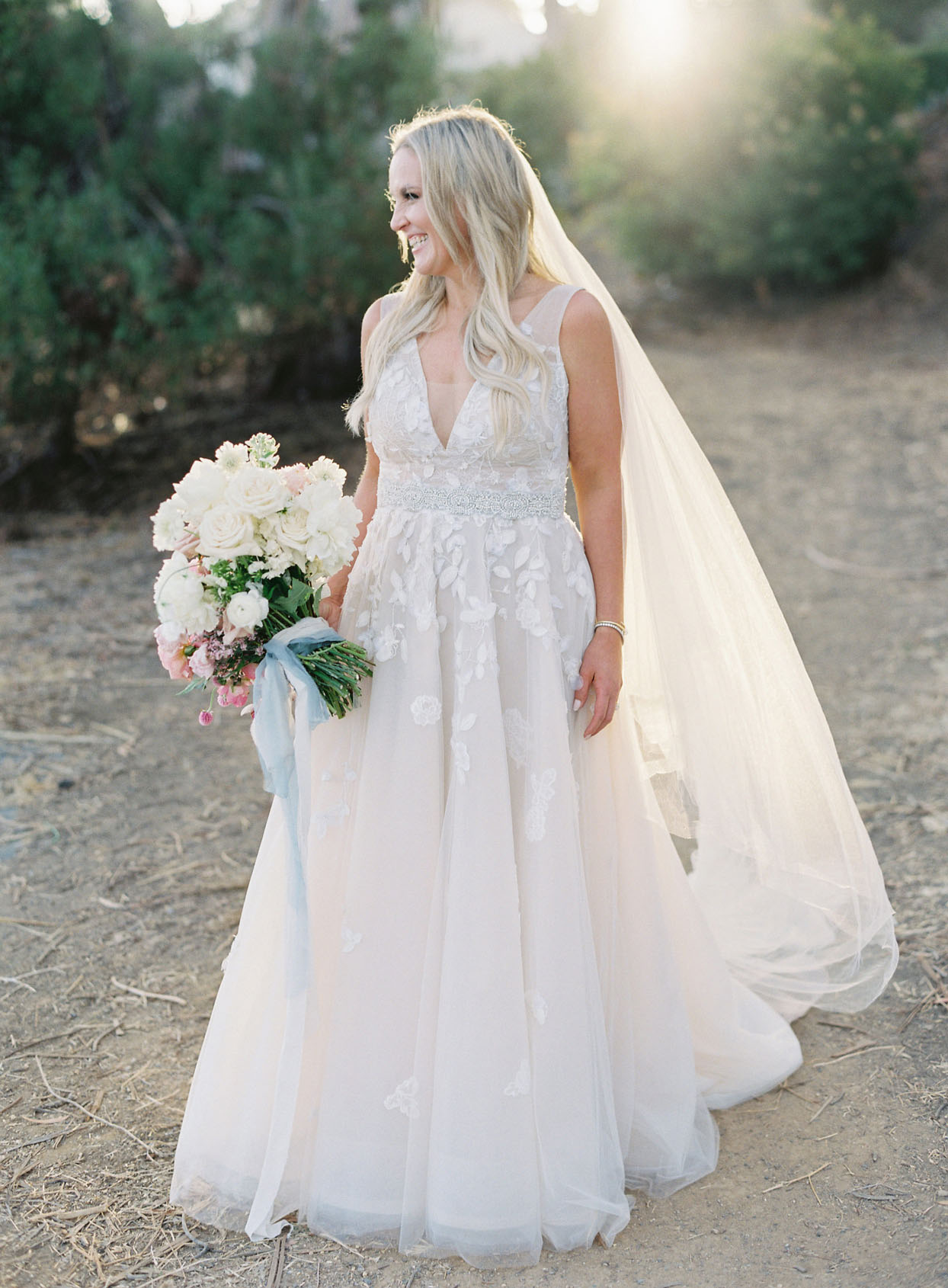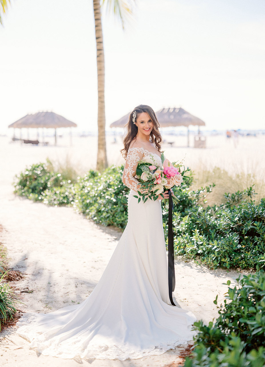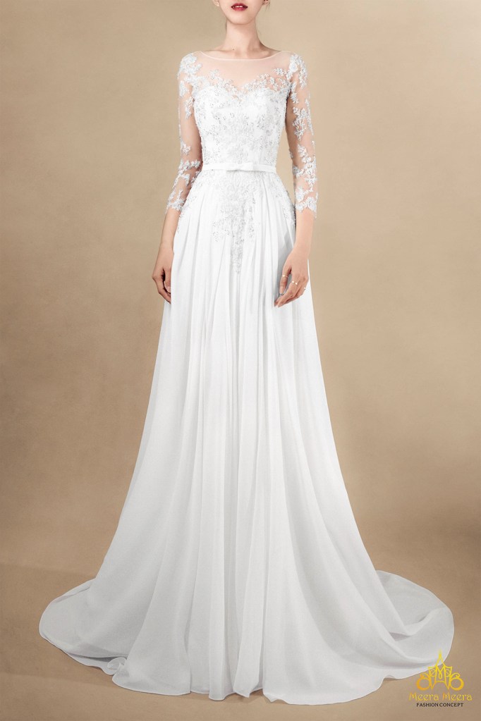 Tay áo dài xuyên thấu cùng cổ áo V phối ren nhẹ nhàng rất thích hợp cho cô dâu diện váy cưới trong nhà thờ. Mời bạn cùng nhìn ngắm hình ảnh xinh đẹp của cô dâu Meera Meera.