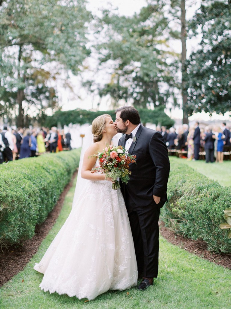 Thêm một gợi ý tuyệt vời cho cô dâu mập có bắp tay to thích mặc váy cưới đuôi cá. Hãy chọn thiết kế trễ vai trên nền lưới nhẹ nhàng giúp làm bờ vai của bạn thêm thanh thoát, đồng thời chân váy có đuôi dài sẽ khiến bạn thêm phần thướt tha và cân đối.