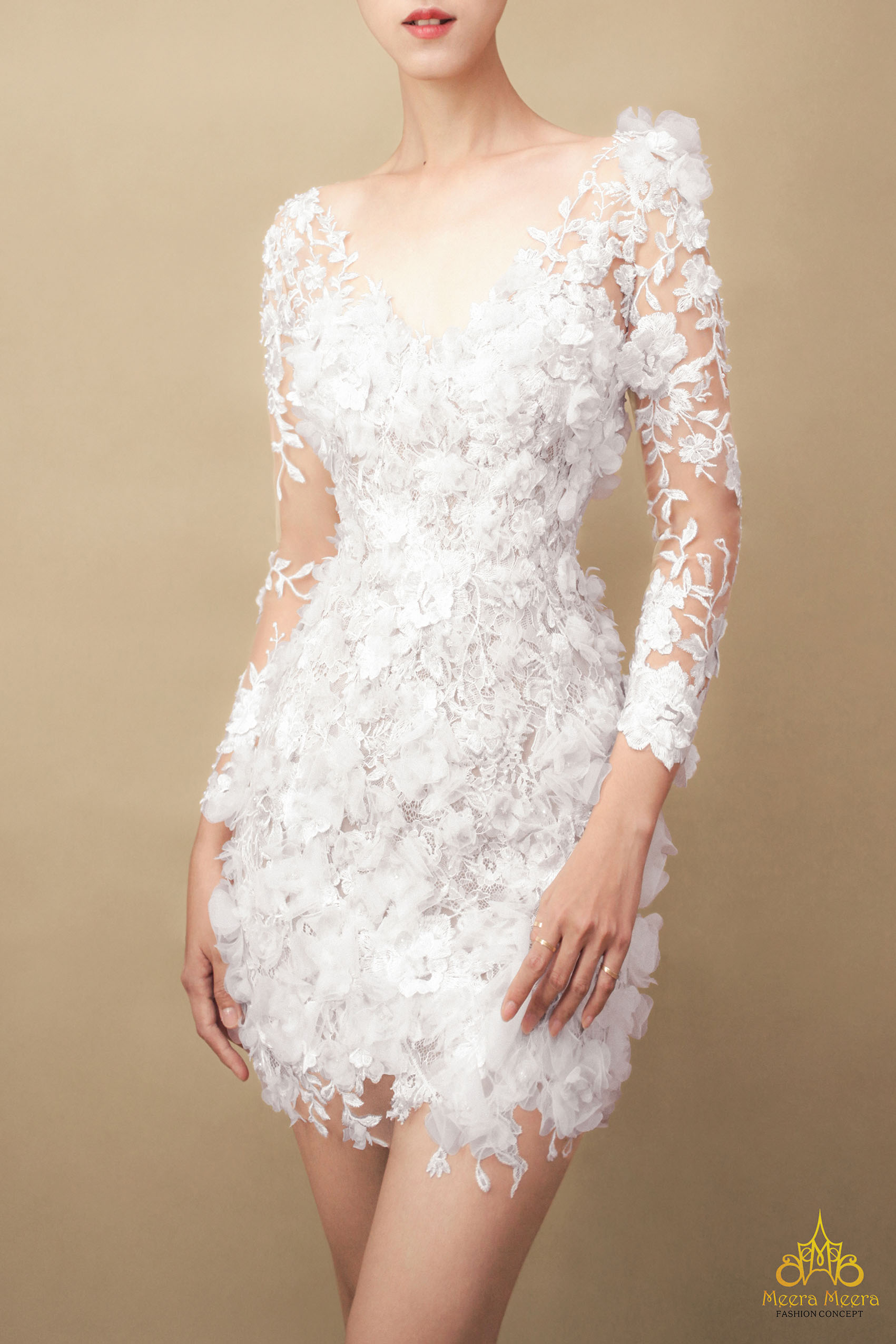 Không gì có thể thích hợp hơn một chiếc váy cưới mini dress đính hoa 3D khi bạn tổ chức lễ đính hôn vào mùa xuân hè 2022, mẫu váy cưới tươi trẻ đến từ thương hiệu Meera Meera Fashion Concept chắc chắn sẽ tạo nên ấn tượng khó phai về hình ảnh một cô dâu năng động và thật sành điệu.