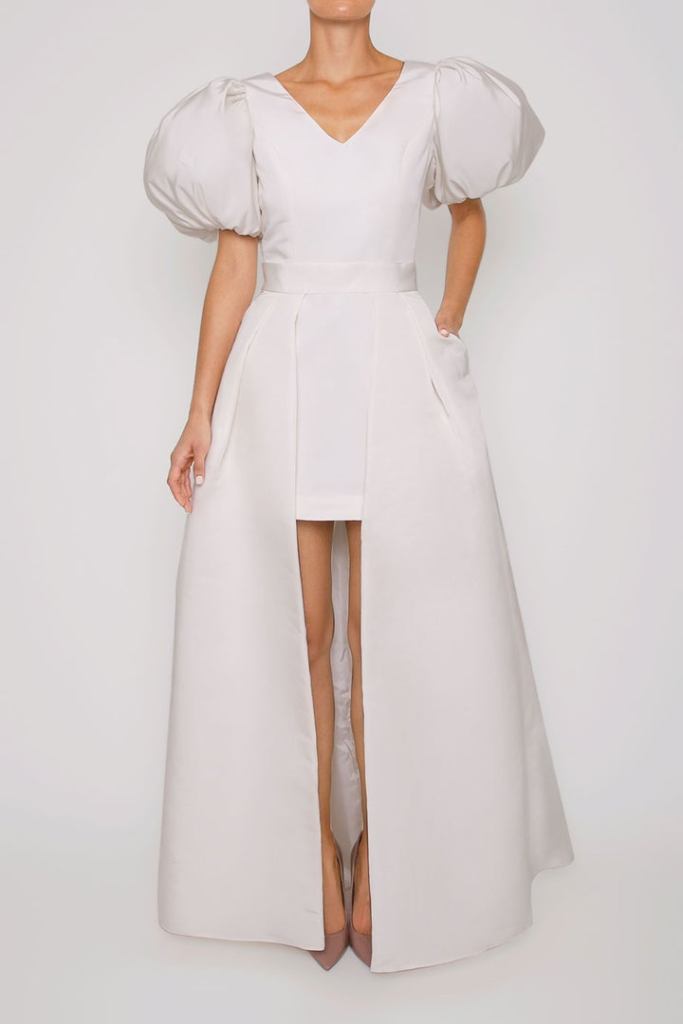 Vừa tiện dụng lại vừa ấn tượng, mẫu áo cưới 2 trong 1 tay phồng đến từ thương hiệu Alexia Maria là một trong những lựa chọn mà cô dâu không thể bỏ qua nếu muốn sở hữu phong cách minimalist tinh tế mà vẫn mang dấu ấn cá nhân.