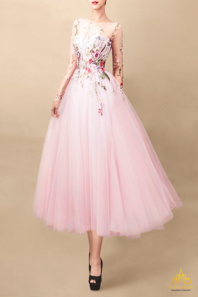 Hãy sẵn sàng hoá thân thành “Nàng thơ mùa xuân 2022” với mẫu váy cưới midi dress màu hồng dâu dịu ngọt của nhà Meera Meera nhé. Thiết kế đậm chất trữ tình thực hiện trên nền vải lưới nhẹ như mây với điểm nhấn đặc sắc là hoạ tiết hoa cỏ mùa xuân đâm chồi nảy lộc trên cơ thể gợi cảm của cô dâu. Một thiết kế hoàn hảo cho lễ đính hôn trang trọng, lại vô cùng xinh xắn và duyên dáng cho những chuyến du lịch phương xa của bạn.