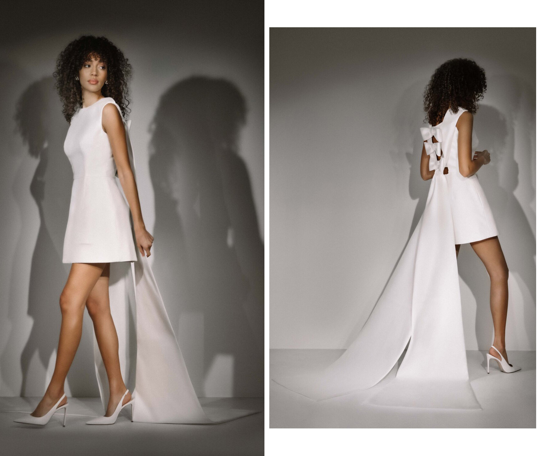 Là một trong những xu hướng luôn khiến tất cả các cô dâu đều mê mẩn, áo cưới ngắn có nơ rời vẫn luôn giữ cho mình một sức hút đặc biệt. Vừa có thể làm váy cưới thứ hai, lại vừa có thể dùng làm váy dạ tiệc sau đám cưới, mẫu thiết kế thời thượng đến từ nhà mốt danh tiếng Oscar de la Renta mang đến cho cô dâu vẻ ngoài vượt thời gian với những nếp xếp khéo léo, phom váy tulip lệch vai cá tính cùng đuôi nơ xoè dài quét đất.