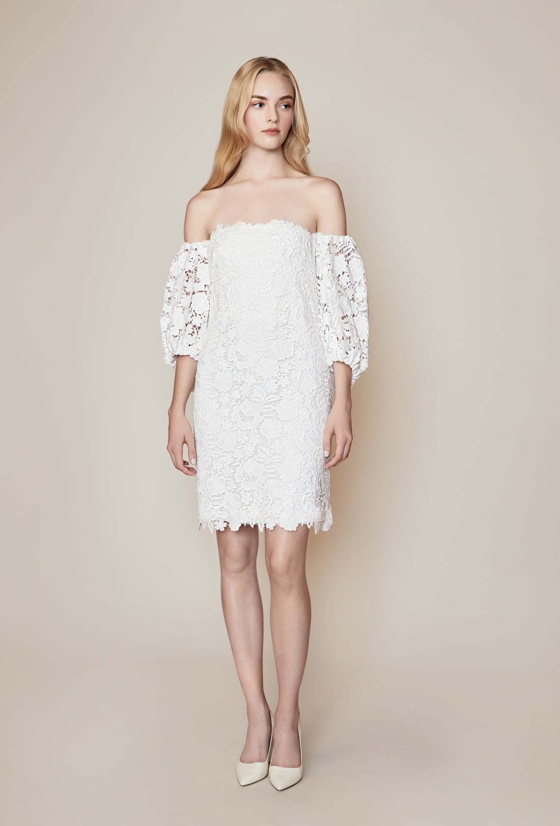 Nhà mốt Lela Rose được biết đến với những thiết kế nên thơ, bay bổng đã dành tặng cho các cô dâu tổ chức đám cưới đầu năm 2022 một mẫu váy cưới cocktail ren tay phồng vừa sành điệu lại mang tính ứng dụng cao.