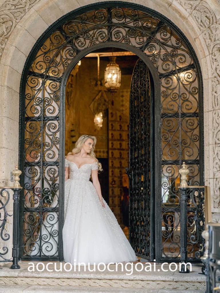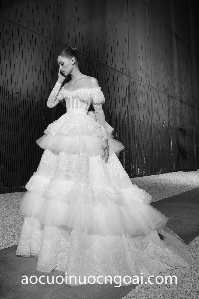 Những cô dâu ưa thích sự khác biệt có thể chọn khoác lên người mẫu áo cưới công chúa xếp bèo tầng thu hút mọi ánh nhìn. Tone màu da cà phê cũng là một yếu tố khiến chiếc váy cưới đặc biệt đứng ngoài số đông, giúp bạn trở thành cô dâu sành điệu dẫn đầu mọi xu hướng.