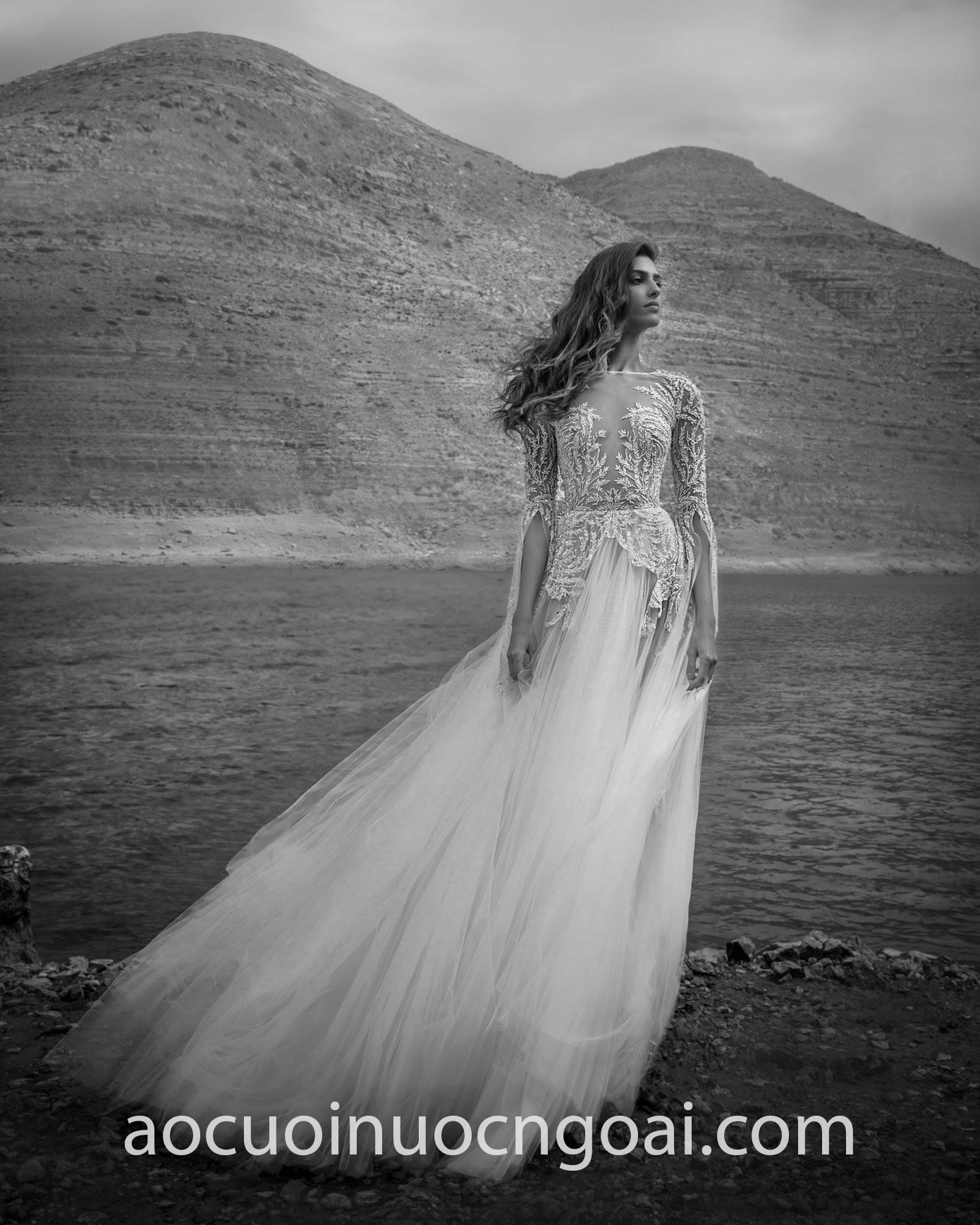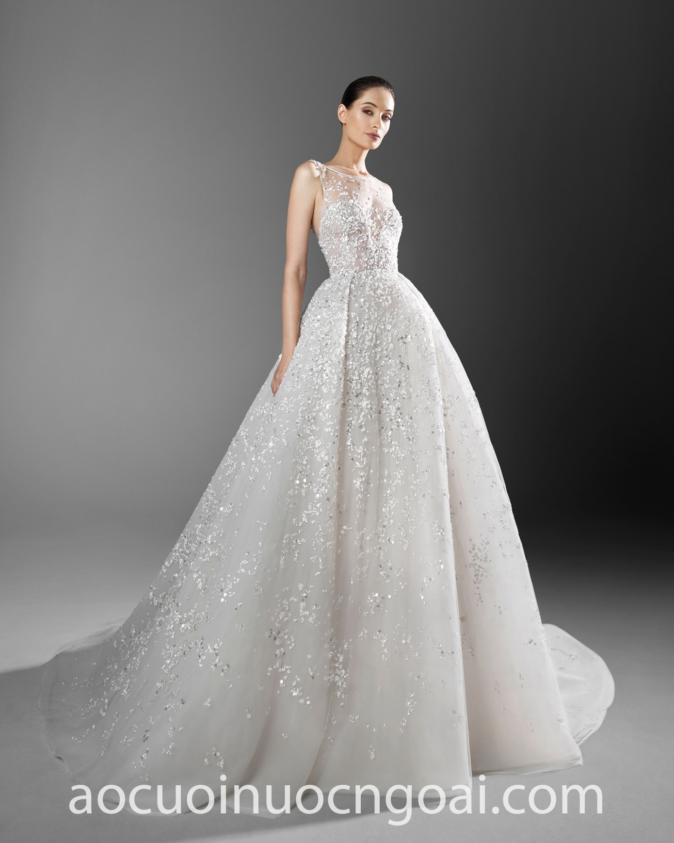 Với những cô dâu có thân hình tuyệt mỹ, mẫu áo cưới xuyên thấu Zuhair Murad sẽ giúp bạn phô diễn trọn vẹn vóc dáng nữ thần với thiết kế trong suốt hoàn toàn, kết hợp hoạ tiết ren thêu uốn lượn theo từng centimet cơ thể. Tùng váy lưới bèo tầng có thể tháo rời góp phần tạo điểm nhấn ấn tượng và tăng độ kín đáo cho bộ trang phục có phần táo bạo.